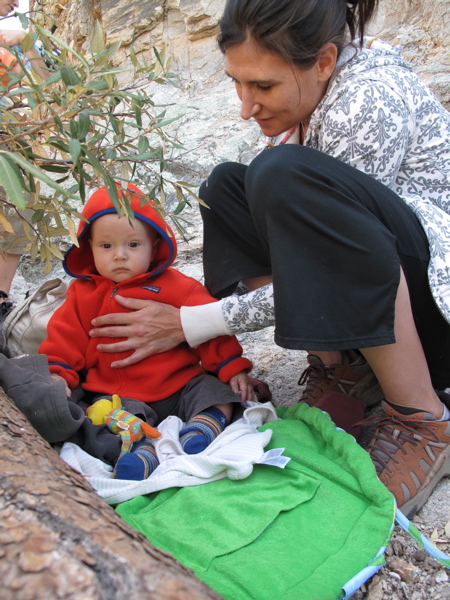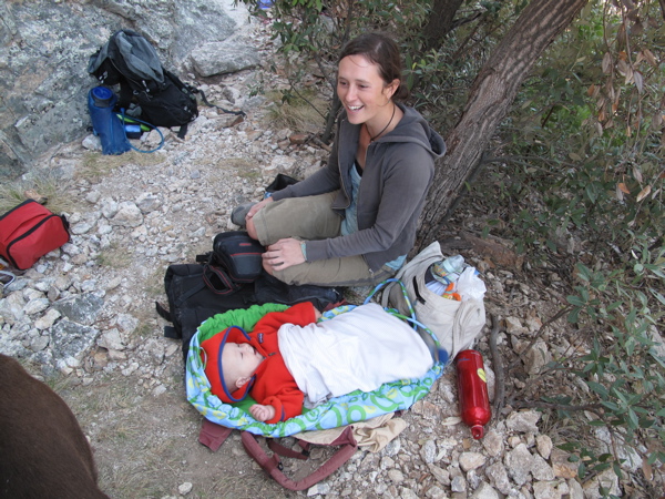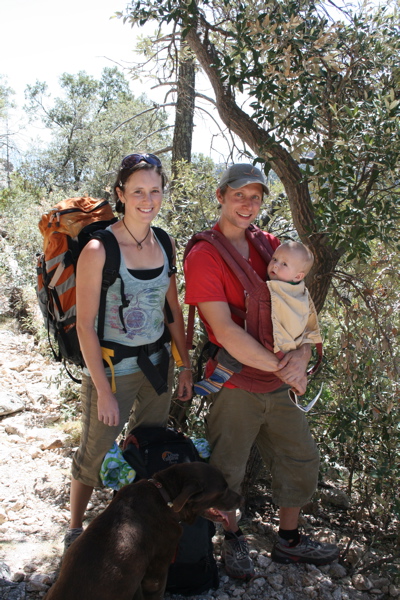 So as my cotton underwear sagged from sweat and the thin straps of the playpen bag started to rub my shoulders raw, I noticed a slight smile creep onto my face, the smile of insanity. And then I looked back at April to check her upward progress. When our eyes met we couldn’t hold in the chuckle of a madman. “What the hell are we doing?” No sooner did we notice our extreme situation when two people hiked up and asked us if we were backpacking. “Nope, climbing” we both replied without hesitation, in unison. And that sums it up. We’re simply climbing. Climbing in crappy circumstances is better than not climbing at all, as April would say. As soon as my feet leave the ground it no longer matters how far I drove, how long I hiked, or how much weight I carried to get here. We love it, all three of us!