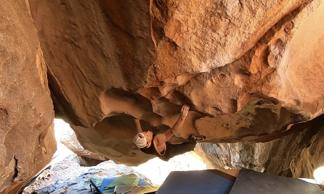 Ok, just one more climb. Paul attempting Smooth Move, v7. A massive dyno. No send but sure fun to try.