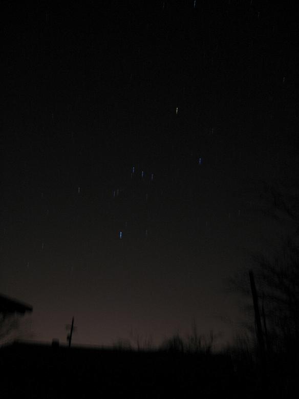 I better not write much because I need to get to bed. I just worked late, ran, climbed, sat in the hot tub and then tried to start a new hobby…astrophotography. Here is what I managed to capture with a 15sec exposure and NO tripod. One photo is of Orion and one is of the Big Dipper. The Shot of Orion is to the West (facing the city of Tucson) where our skies are washed out from light. The shot of the Dipper is to the East (facing the mts.) in the dark sky.