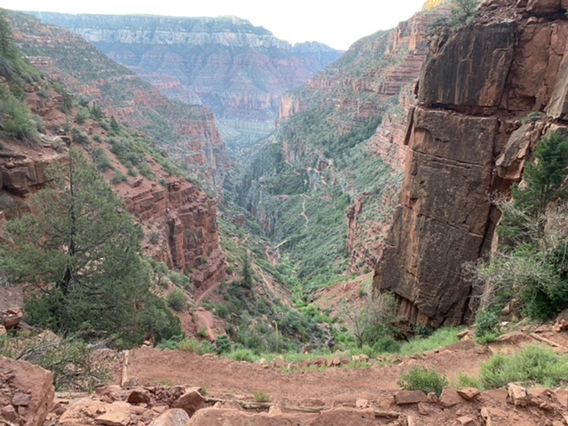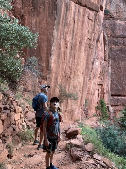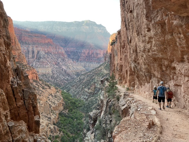 This weekend: an out-and-back from the North Rim of the Grand Canyon, down the North Kaibab trail to the Manzanita Rest Area. 11.5 miles total and 3641 feet elevation loss / gain. While there’s nothing at all special about the Manzanita Rest Area, the North Kaibab is my favorite trail of all time, and in the top 3 for Paul. We were SO eager and excited to show it off to the kids. Giddiness was as high as it gets as we all quite literally bounded down the trail in the early wee hours of the morning. My memory did not disappoint, the terrain was as beautiful and wild as I remembered it.