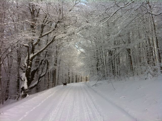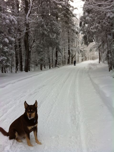 So it pretty much hasn’t stopped snowing since we’ve arrived at Grandma and Papa’s house. This morning we measured 20 inches but like I said, it’s still coming down. Earlier today my mom, sister Katie and I (and Hazel too!) went out on a cross country skiing adventure. Love it!!!!